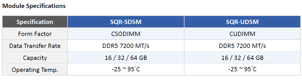 Các mẫu thử sớm của dòng Advantech SQR-SD5M (CSODIMM) và SQR-UD5M (CUDIMM) sẽ có sẵn để đánh giá từ tháng 6 năm 2026. Để biết thêm thông tin, vui lòng liên hệ đại diện Advantech tại địa phương hoặc truy cập website SQRAM của Advantech.
