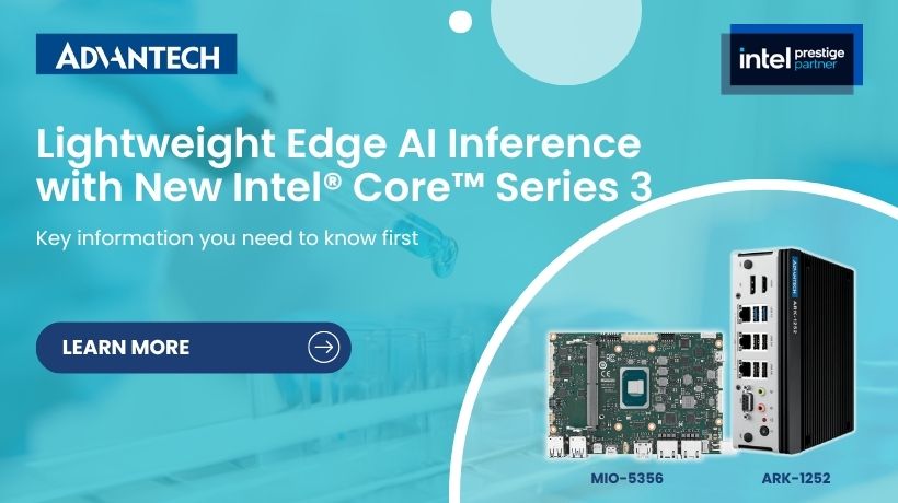 Advantech dự định giới thiệu nhiều hệ thống dựa trên bộ xử lý Intel Core Series 3 bắt đầu từ tháng 4 năm 2026, bao gồm máy tính nhúng một bo mạch MIO-5356, máy tính biên gắn DIN-Rail ARK-1252 và máy tính biên không quạt ARK-2233. Các hệ thống này được thiết kế để cung cấp khả năng tính toán hiệu quả và cân bằng cho suy luận AI biên nhẹ trong nhiều ứng dụng công nghiệp khác nhau.